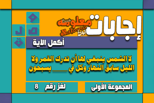 حل اكمل الاية لا الشمس ينبغي لها ان تدرك القمر ولا الليل سابق النهار وكل في يسبحون لغز رقم صقور الإبدآع