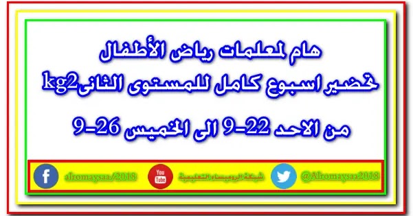 هام لمعلمات رياض الأطفال تحضير اسبوع كامل للمستوى الثانى Kg2 من يوم الاحد 22 9 حتى الخميس 26 9