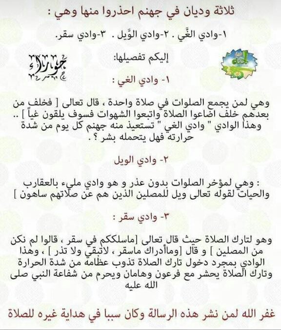 صدقة جارية لـ فايز محمد בטוויטר ثلاثة وديان في جهنم أحذروا منها وادي الغي وادي الويل وادي سقر