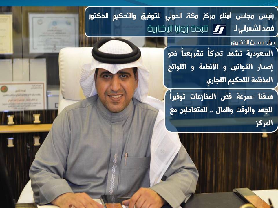 رئيس أمناء مركز مكة الدولي للتوفيق والتحكيم د الشمراني في حوار مع زوايا الإخبارية زوايا الإخبارية