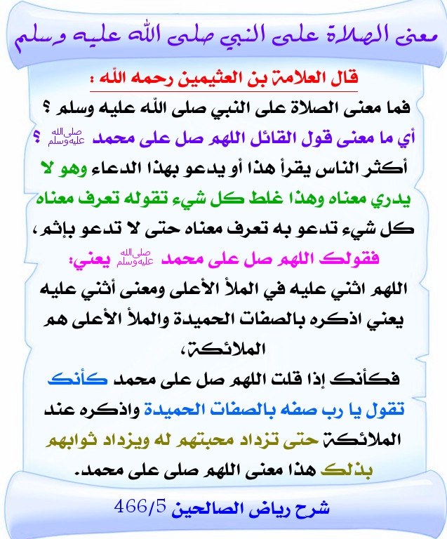 معنى قول القائل اللهم صل على محمد صلى الله عليه وسلم لابن عثيمين بطاقة دعوية منتديات الإمام الآجري