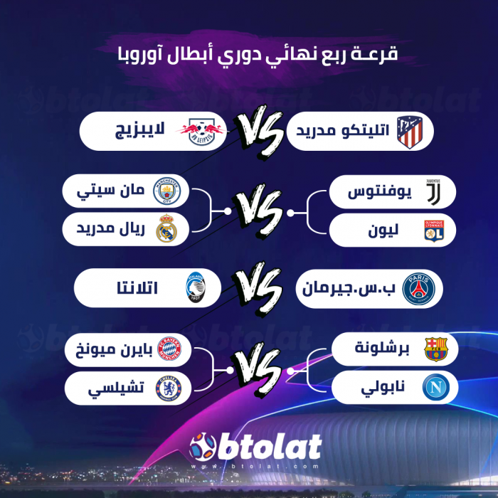 مواجهات ربع نهائي دوري ابطال اوروبا 2020