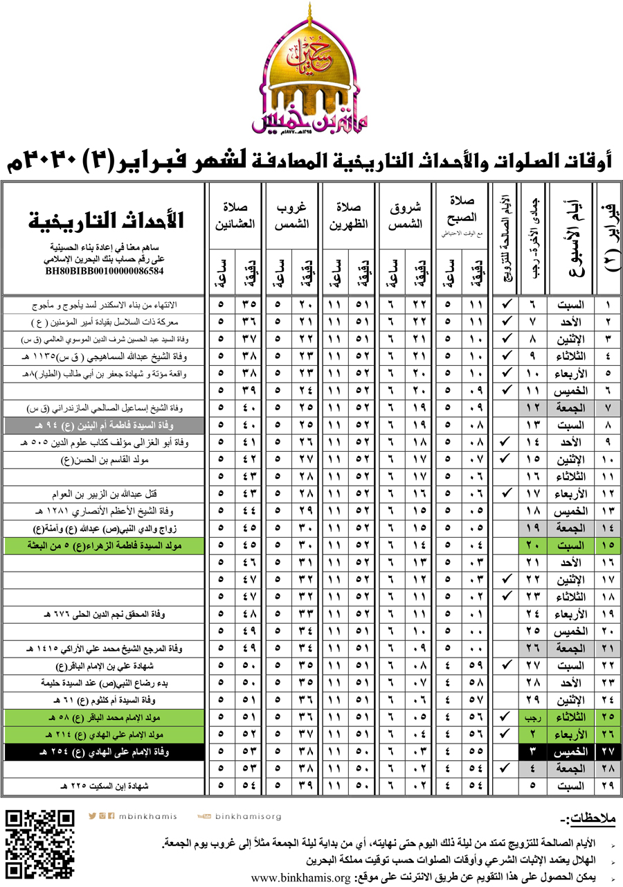 توقيت مواقيت الصلاة تقويم هجري ميلادي وق مأتم الطويلة مملكة البحرين Facebook