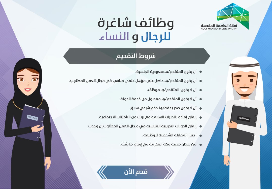 وظائف أمانة العاصمة المقدسة للرجال والنساء 15000 وظيفة