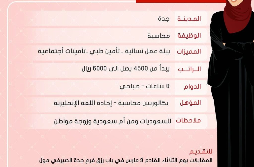والوظائف متاحة لحملة شهادة البكالوريوس وذلك للعمل في قسم العمليات بمحافظة المجمعة والخفجي.