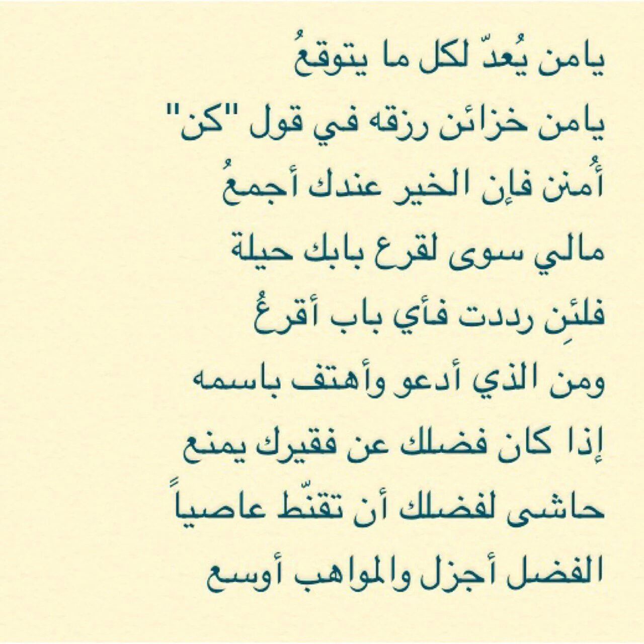 يا من يرى ما في الضمير ويسمع يا من يرج ى للشدائد كلها يا من خزائن رزقه في قول كن مالي سوى فقرى إليك وسيله مالي سوى قرعي لباب Islamic Quotes Quotes